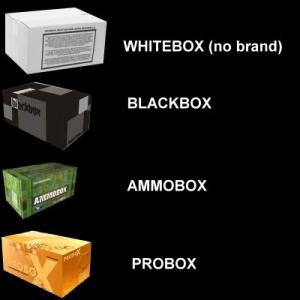 We sell four brands: BLACKBOX; AMMOBOX; DRACULA ATTAK; PROBOX and if you want good quality and better price you can buy from us white box (no brand)seconds.